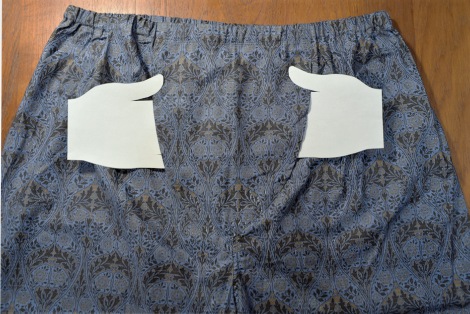 メンズボトムスの前開きは通常の形状で面ファスナー留めです。